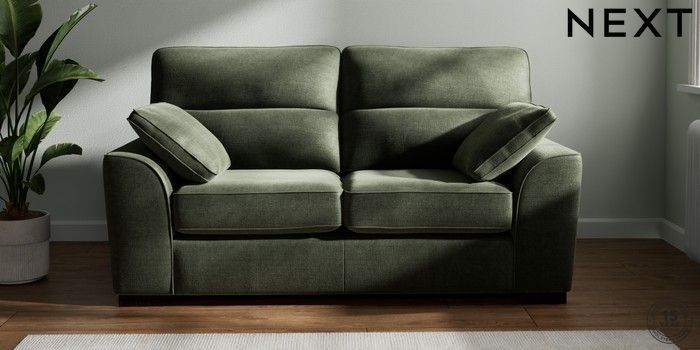 7.2.6 Buy Stamford Highback 2 Seater Sofa Luxe Chenille Mid Green Large Square Angle - Dark from the Next UK online shop Click here to use our accessible website