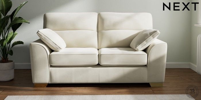 7.0.3 Buy Stamford Highback 2 Seater Sofa Luxe Chenille Oyster Large Square Angle - Brushed Brass from the Next UK online shop Click here to use our accessible website