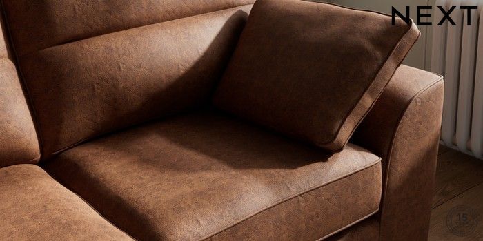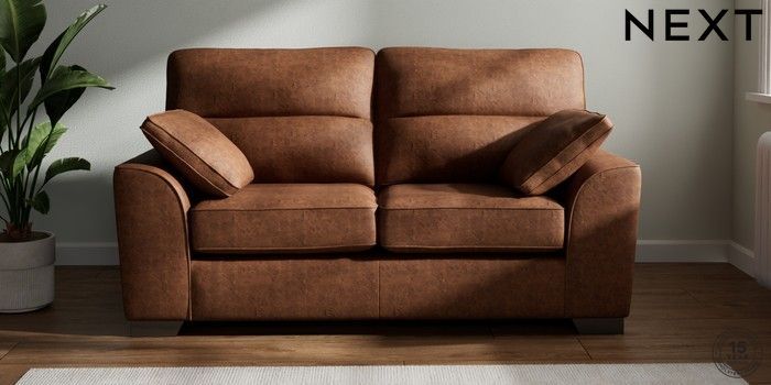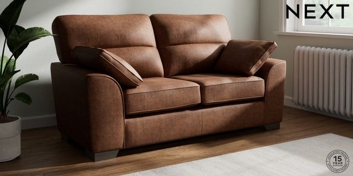 7.3.1 Buy Stamford Highback 2 Seater Sofa Monza Faux Leather Easy Clean Chestnut Brown Large Square Angle - Gunmetal from the Next UK online shop Click here to use our accessible website