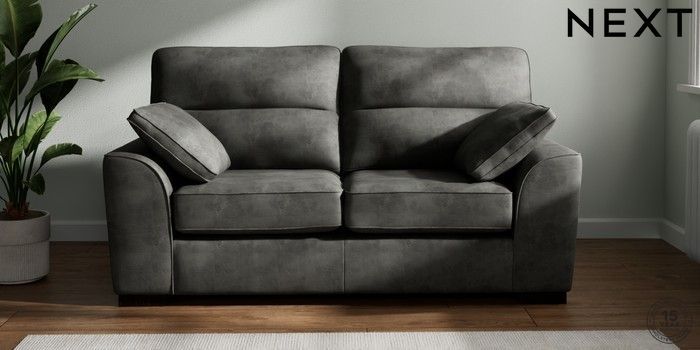 7.3.1 Buy Stamford Highback 2 Seater Sofa Monza Faux Leather Easy Clean Dark Grey Large Square Angle - Dark from the Next UK online shop Click here to use our accessible website