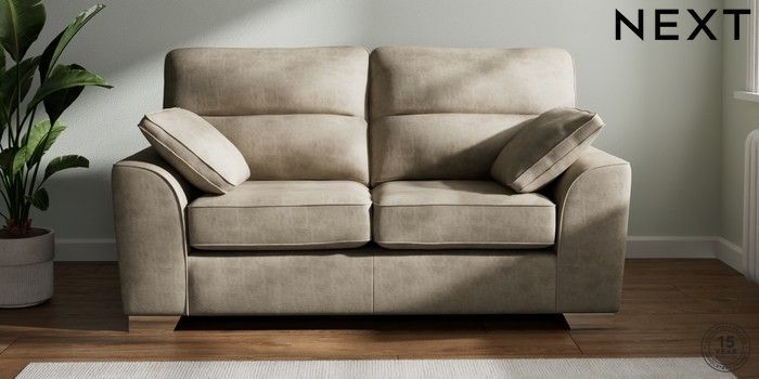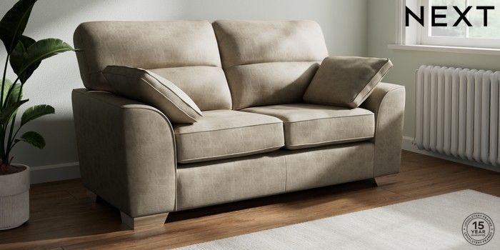 7.3.1 Buy Stamford Highback 2 Seater Sofa Monza Faux Leather Easy Clean Mink Brown Large Square Angle - Chrome Metal from the Next UK online shop Click here to use our accessible website
