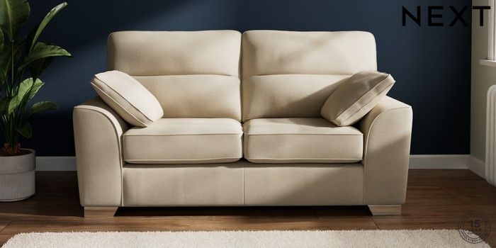7.2.6 Buy Stamford Highback 2 Seater Sofa Natural Mix Light Natural Large Square Angle - Chrome Metal from the Next UK online shop Click here to use our accessible website