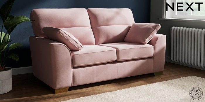 7.2.10 Buy Stamford Highback 2 Seater Sofa Natural Mix Light Rose Pink Large Square Angle - Brushed Brass from the Next UK online shop Click here to use our accessible website