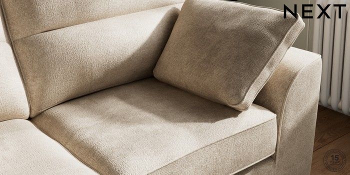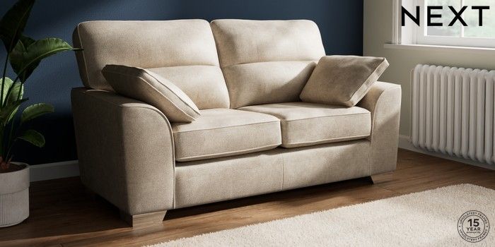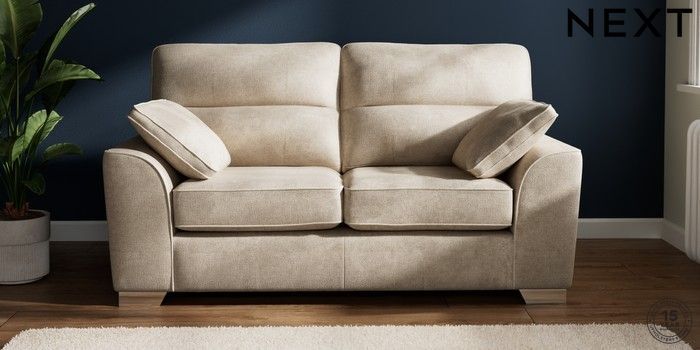 7.3.1 Buy Stamford Highback 2 Seater Sofa Plush Chenille Light Natural Large Square Angle - Chrome Metal from the Next UK online shop Click here to use our accessible website
