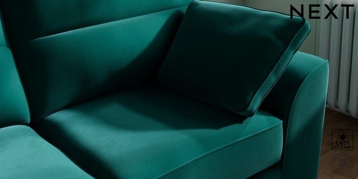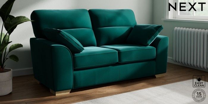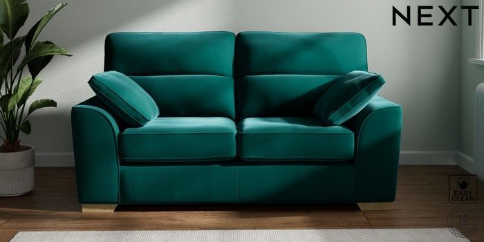 7.2.10 Buy Stamford Highback 2 Seater Sofa Plush Velvet Easy Clean Juniper Green Large Square Angle - Light from the Next UK online shop Click here to use our accessible website