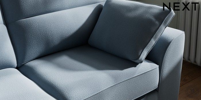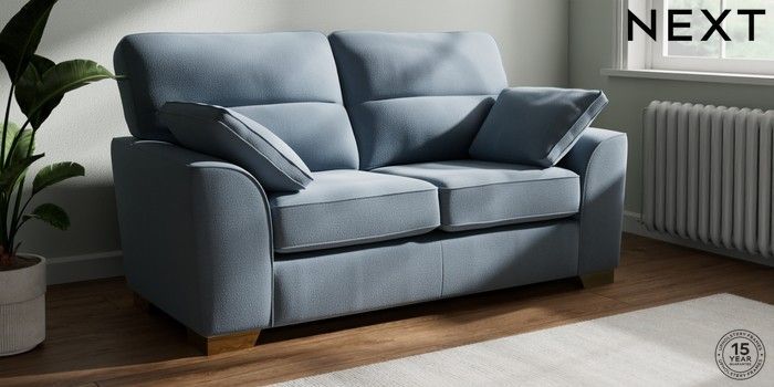 7.2.10 Buy Stamford Highback 2 Seater Sofa Relaxed Linen Look Mid Blue Large Square Angle - Brushed Brass from the Next UK online shop Click here to use our accessible website