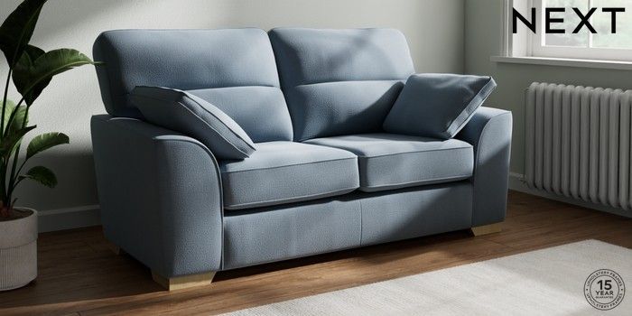 7.2.10 Buy Stamford Highback 2 Seater Sofa Relaxed Linen Look Mid Blue Large Square Angle - Light from the Next UK online shop Click here to use our accessible website