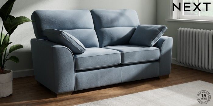 7.2.10 Buy Stamford Highback 2 Seater Sofa Relaxed Linen Look Mid Blue Large Square Angle - Mid from the Next UK online shop Click here to use our accessible website