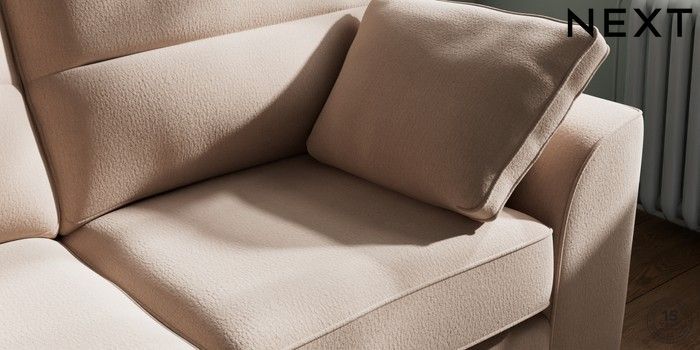 7.2.10 Buy Stamford Highback 2 Seater Sofa Relaxed Linen Look Mid Natural Large Square Angle - Brushed Brass from the Next UK online shop Click here to use our accessible website