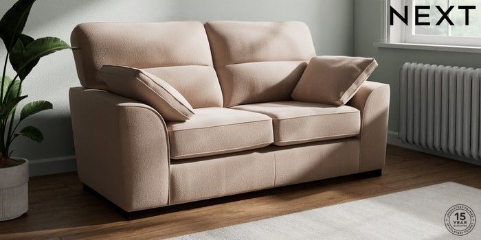 7.3.1 Buy Stamford Highback 2 Seater Sofa Relaxed Linen Look Mid Natural Large Square Angle - Dark from the Next UK online shop Click here to use our accessible website