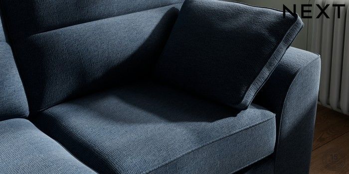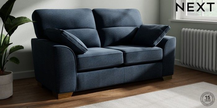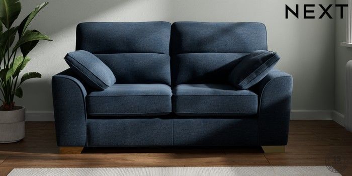 7.2.6 Buy Stamford Highback 2 Seater Sofa Ripple Chenille Dark Blue Large Square Angle - Brushed Brass from the Next UK online shop Click here to use our accessible website