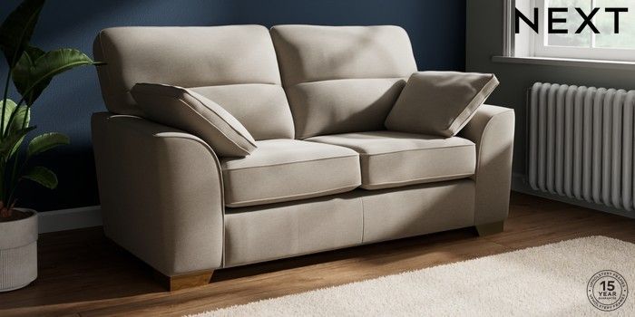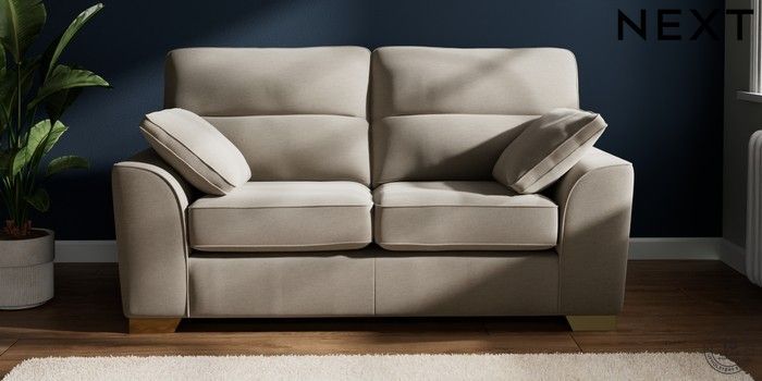 7.2.10 Buy Stamford Highback 2 Seater Sofa Ripple Chenille Light Natural Large Square Angle - Brushed Brass from the Next UK online shop Click here to use our accessible website