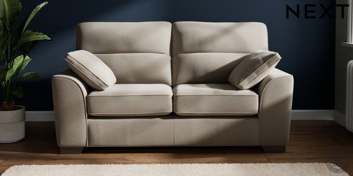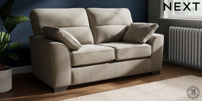 7.2.10 Buy Stamford Highback 2 Seater Sofa Ripple Chenille Light Natural Large Square Angle - Gunmetal from the Next UK online shop Click here to use our accessible website