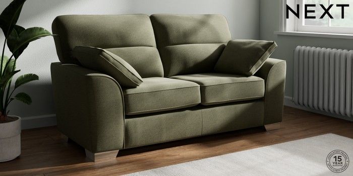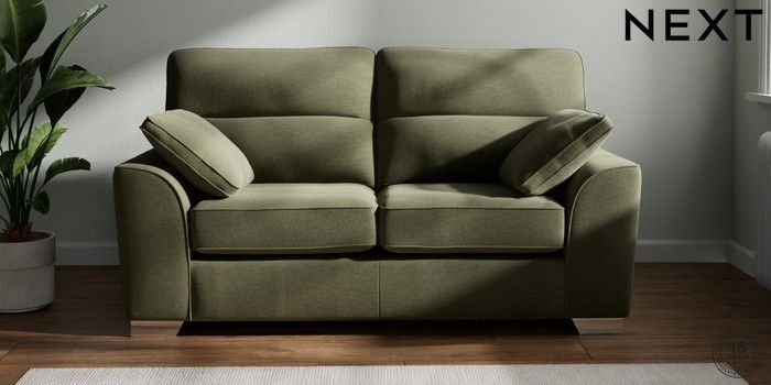 7.2.10 Buy Stamford Highback 2 Seater Sofa Ripple Chenille Mid Moss Green Large Square Angle - Chrome Metal from the Next UK online shop Click here to use our accessible website