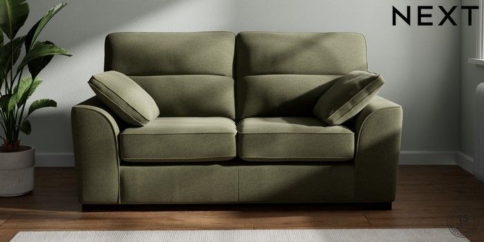 7.2.10 Buy Stamford Highback 2 Seater Sofa Ripple Chenille Mid Moss Green Large Square Angle - Dark from the Next UK online shop Click here to use our accessible website