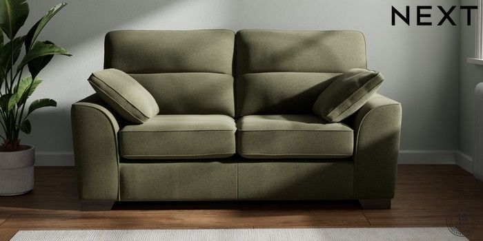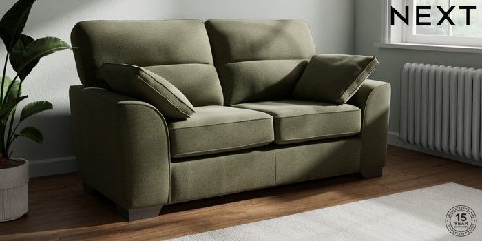 7.2.10 Buy Stamford Highback 2 Seater Sofa Ripple Chenille Mid Moss Green Large Square Angle - Gunmetal from the Next UK online shop Click here to use our accessible website