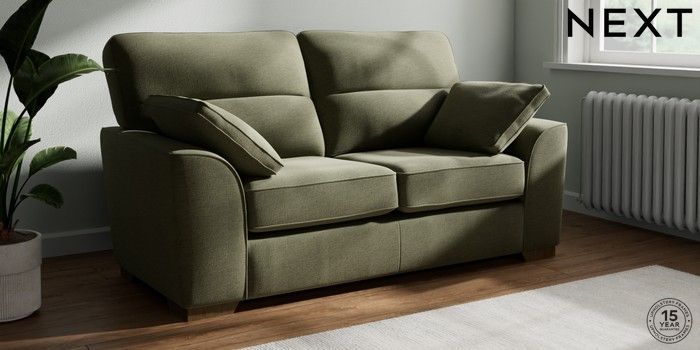 7.2.10 Buy Stamford Highback 2 Seater Sofa Ripple Chenille Mid Moss Green Large Square Angle - Mid from the Next UK online shop Click here to use our accessible website