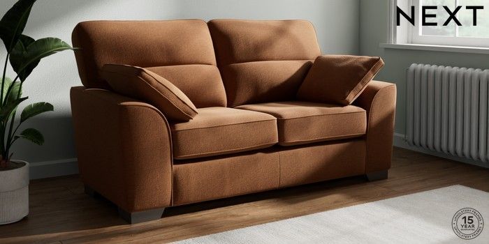 7.2.10 Buy Stamford Highback 2 Seater Sofa Ripple Chenille Mid Rust Brown Large Square Angle - Gunmetal from the Next UK online shop Click here to use our accessible website