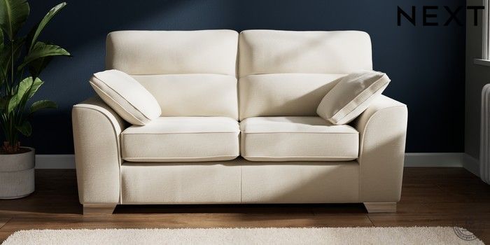7.2.10 Buy Stamford Highback 2 Seater Sofa Ripple Chenille Oyster Large Square Angle - Chrome Metal from the Next UK online shop Click here to use our accessible website