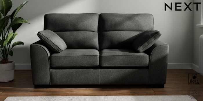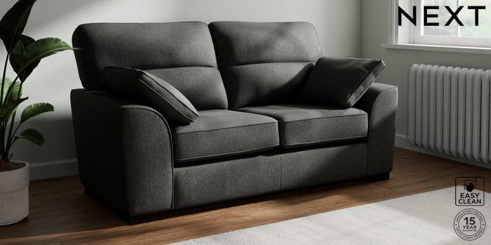 7.3.1 Buy Stamford Highback 2 Seater Sofa Tweedy Blend Easy Clean Charcoal Grey Large Square Angle - Dark from the Next UK online shop Click here to use our accessible website