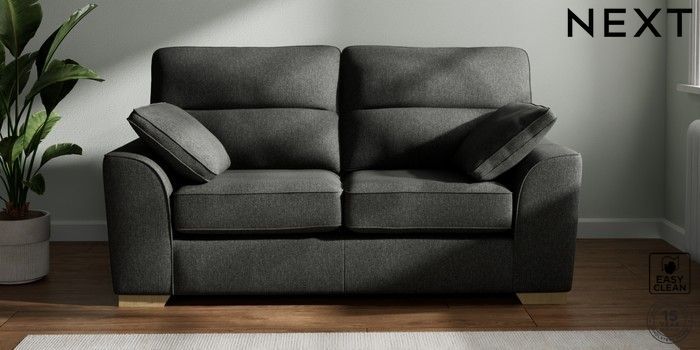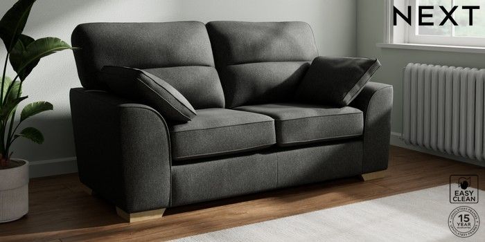 7.2.10 Buy Stamford Highback 2 Seater Sofa Tweedy Blend Easy Clean Charcoal Grey Large Square Angle - Light from the Next UK online shop Click here to use our accessible website