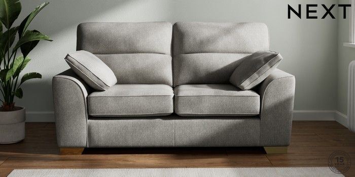 7.2.6 Buy Stamford Highback 2 Seater Sofa Tweedy Chenille Mid Grey Large Square Angle - Brushed Brass from the Next UK online shop Click here to use our accessible website