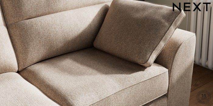 7.3.1 Buy Stamford Highback 2 Seater Sofa Tweedy Chenille Mid Natural Large Square Angle - Gunmetal from the Next UK online shop Click here to use our accessible website