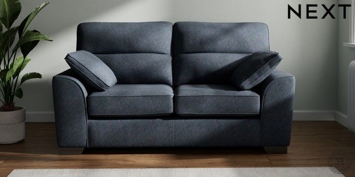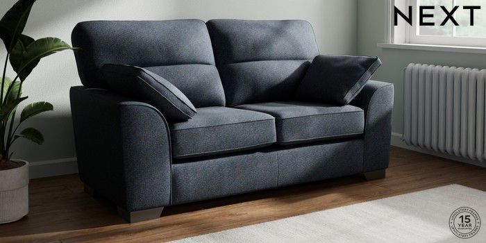 7.3.1 Buy Stamford Highback 2 Seater Sofa Tweedy Chenille Navy Blue Large Square Angle - Gunmetal from the Next UK online shop Click here to use our accessible website