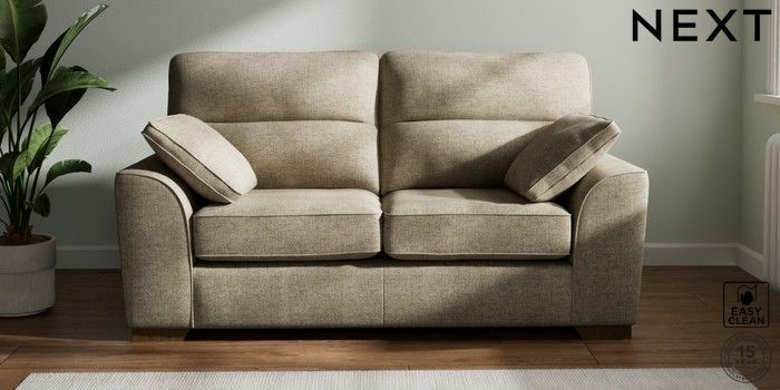 7.2.6 Buy Stamford Highback 2 Seater Sofa Woven Chenille Easy Clean Mid Natural Large Square Angle - Mid from the Next UK online shop Click here to use our accessible website