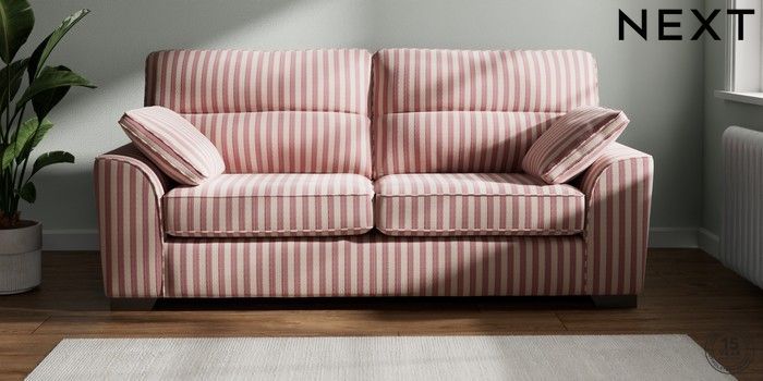 7.3.1 Buy Stamford Highback 3 Seater Sofa Bold Chenille Stripe Dark Pink Large Square Angle - Gunmetal from the Next UK online shop Click here to use our accessible website