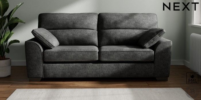 7.3.1 Buy Stamford Highback 3 Seater Sofa Boucle Weave Easy Clean Charcoal Grey Large Square Angle - Gunmetal from the Next UK online shop Click here to use our accessible website