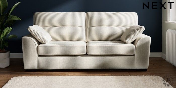 7.3.1 Buy Stamford Highback 3 Seater Sofa Chenille Stripe Moss Green Large Square Angle - Dark from the Next UK online shop Click here to use our accessible website