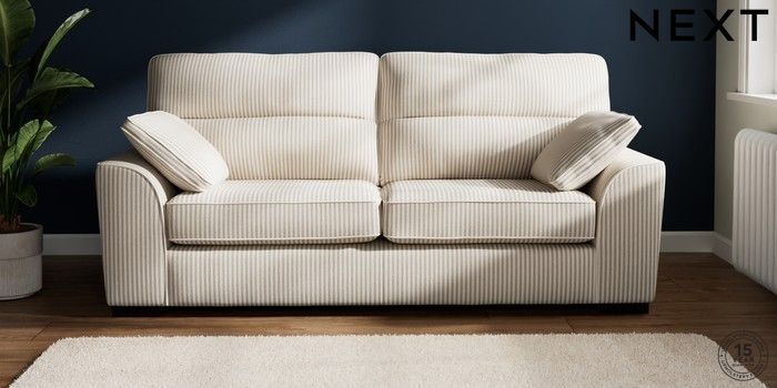 7.3.1 Buy Stamford Highback 3 Seater Sofa Chenille Stripe Natural Large Square Angle - Dark from the Next UK online shop Click here to use our accessible website