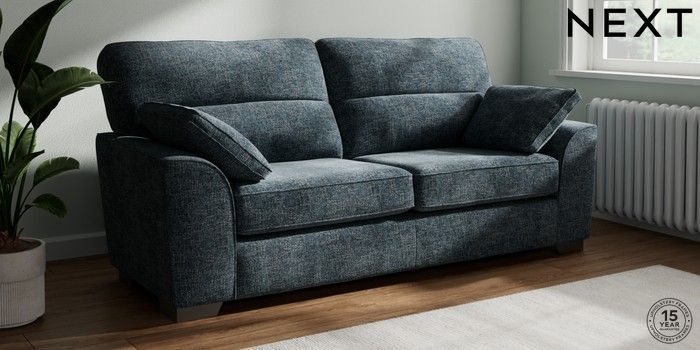 7.2.10 Buy Stamford Highback 3 Seater Sofa Chunky Chenille Dark Navy Blue Large Square Angle - Gunmetal from the Next UK online shop Click here to use our accessible website