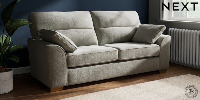 7.2.10 Buy Stamford Highback 3 Seater Sofa Chunky Texture Dove Large Square Angle - Brushed Brass from the Next UK online shop Click here to use our accessible website