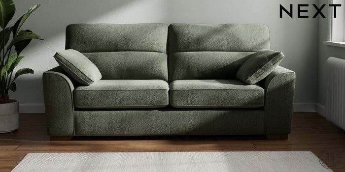 7.2.10 Buy Stamford Highback 3 Seater Sofa Chunky Texture Mid Forest Green Large Square Angle - Mid from the Next UK online shop Click here to use our accessible website