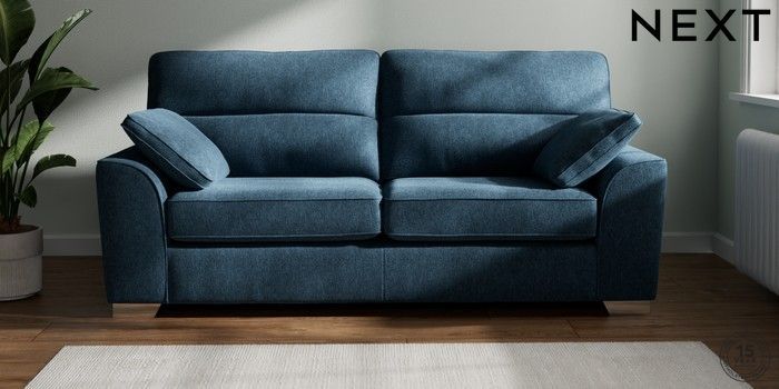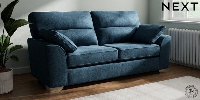 7.2.10 Buy Stamford Highback 3 Seater Sofa Cotswold Chenille Dark Blue Large Square Angle - Chrome Metal from the Next UK online shop Click here to use our accessible website
