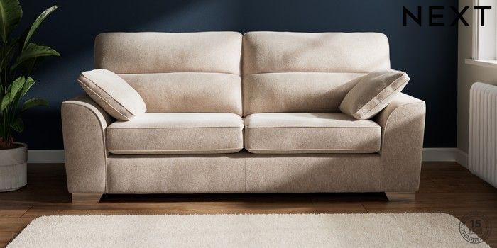 7.2.6 Buy Stamford Highback 3 Seater Sofa Cotswold Chenille Light Natural Large Square Angle - Chrome Metal from the Next UK online shop Click here to use our accessible website