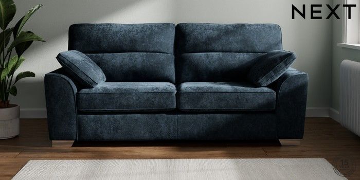 7.2.6 Buy Stamford Highback 3 Seater Sofa Distressed Velour Midnight Blue Large Square Angle - Chrome Metal from the Next UK online shop Click here to use our accessible website