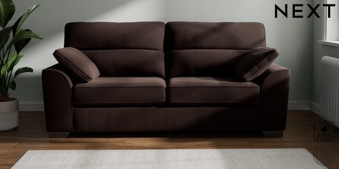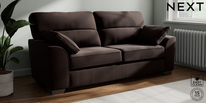 7.3.1 Buy Stamford Highback 3 Seater Sofa Fine Chenille Easy Clean Chocolate Brown Large Square Angle - Gunmetal from the Next UK online shop Click here to use our accessible website