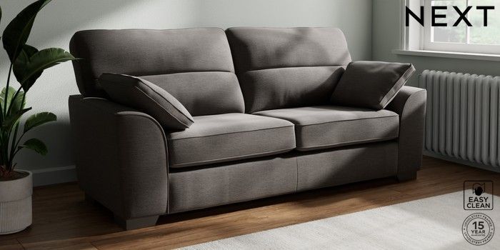 7.3.1 Buy Stamford Highback 3 Seater Sofa Fine Chenille Easy Clean Dark Smoke Grey Large Square Angle - Gunmetal from the Next UK online shop Click here to use our accessible website