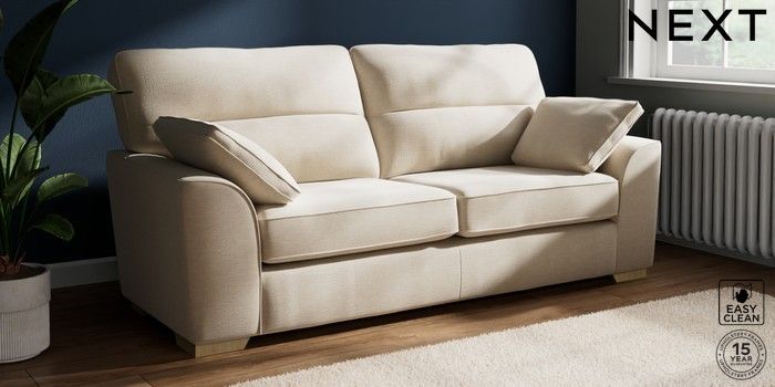 7.2.10 Buy Stamford Highback 3 Seater Sofa Fine Chenille Easy Clean Oyster Large Square Angle - Light from the Next UK online shop Click here to use our accessible website