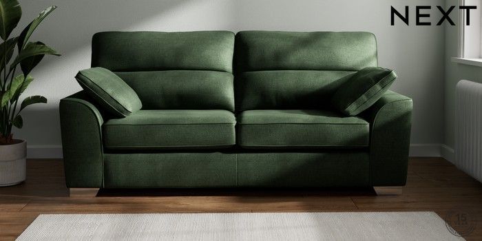 7.2.6 Buy Stamford Highback 3 Seater Sofa Luxe Chenille Dark Green Large Square Angle - Chrome Metal from the Next UK online shop Click here to use our accessible website