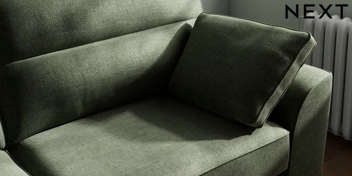 7.2.6 Buy Stamford Highback 3 Seater Sofa Luxe Chenille Mid Green Large Square Angle - Gunmetal from the Next UK online shop Click here to use our accessible website