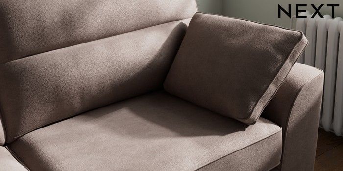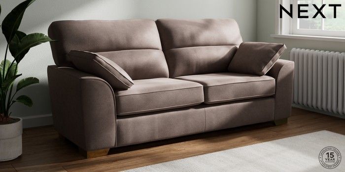 7.2.10 Buy Stamford Highback 3 Seater Sofa Luxe Chenille Mink Brown Large Square Angle - Brushed Brass from the Next UK online shop Click here to use our accessible website