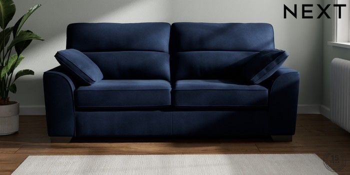 7.2.10 Buy Stamford Highback 3 Seater Sofa Luxe Chenille Navy Blue Large Square Angle - Gunmetal from the Next UK online shop Click here to use our accessible website