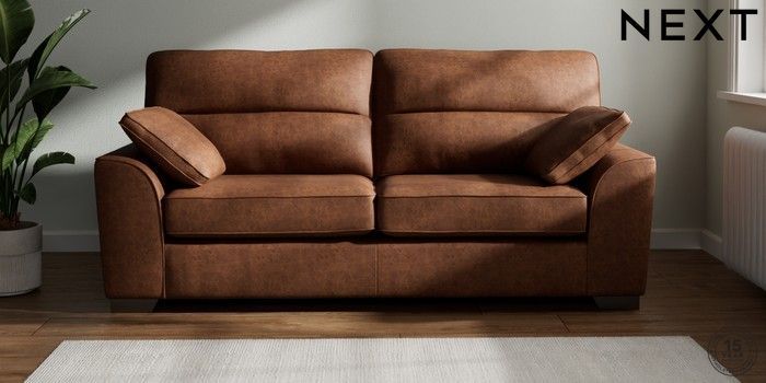 7.3.1 Buy Stamford Highback 3 Seater Sofa Monza Faux Leather Easy Clean Chestnut Brown Large Square Angle - Gunmetal from the Next UK online shop Click here to use our accessible website