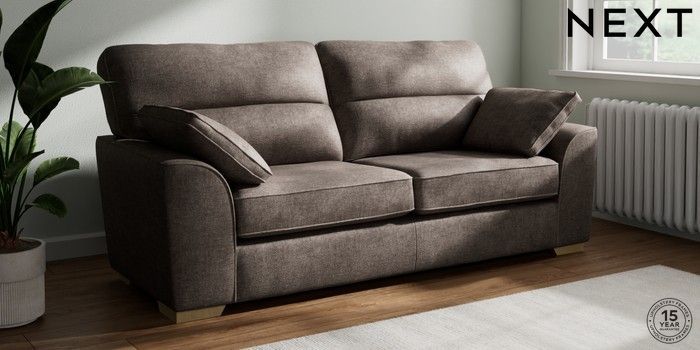 7.2.10 Buy Stamford Highback 3 Seater Sofa Plush Chenille Mink Brown Large Square Angle - Light from the Next UK online shop Click here to use our accessible website
