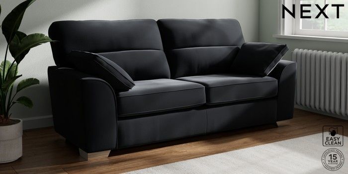 7.3.1 Buy Stamford Highback 3 Seater Sofa Plush Velvet Easy Clean Charcoal Grey Large Square Angle - Chrome Metal from the Next UK online shop Click here to use our accessible website