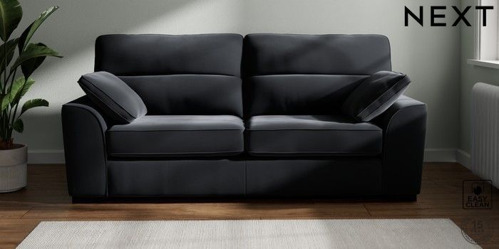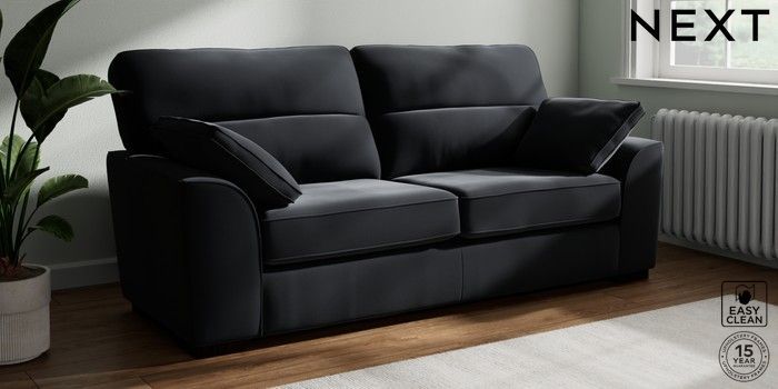 7.3.1 Buy Stamford Highback 3 Seater Sofa Plush Velvet Easy Clean Charcoal Grey Large Square Angle - Dark from the Next UK online shop Click here to use our accessible website